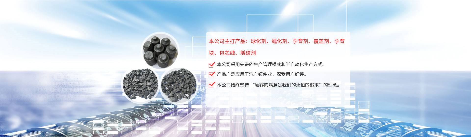 江蘇旦晨新材料科技有限公司、鎮江市勤成鑄造材料有限公司于2010年3月,成立于美麗的水上花園城市—江蘇揚中,公司是一股份制企業,注冊資本為200萬人民幣,主要從事鑄造用球化劑、孕育劑及相關產品的生產、加工和銷售。 公司引進日本企業的生產管理模式,半自動化生產方式。目前生產能力:球化劑250T/月、孕育劑300T/月、鑄造相關品200T/月。為嚴格控制產品質量,公司采用國內的ICP-AES等離子體發射光譜儀對采購原